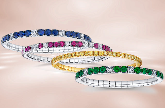 Our Gemstone Eternity Bracelets are designed to be easy to wear with their easy on - easy off flexible technology. Wear them alone or grouped together - The looks are limitless.