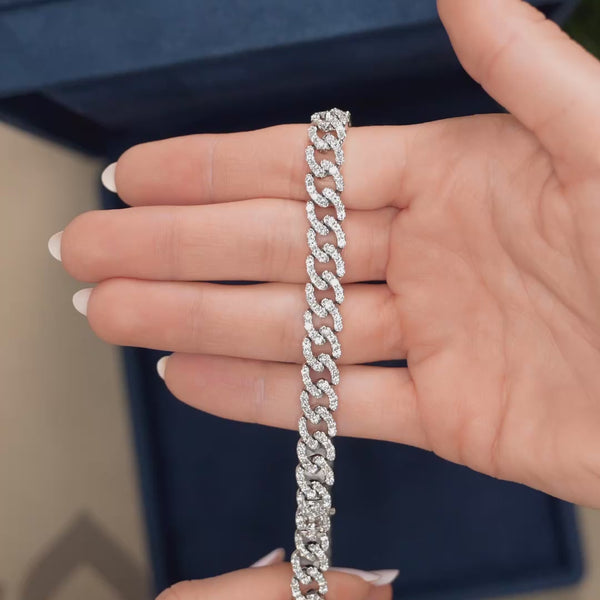 Diamond curb link necklace featuring 12.15 carats total weight in round brilliant cut diamonds set in 18k white gold. 16.5" long with 573 diamonds.