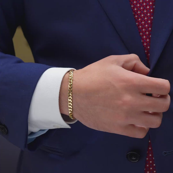 Men's 6mm curb link bracelet in 18k yellow gold.